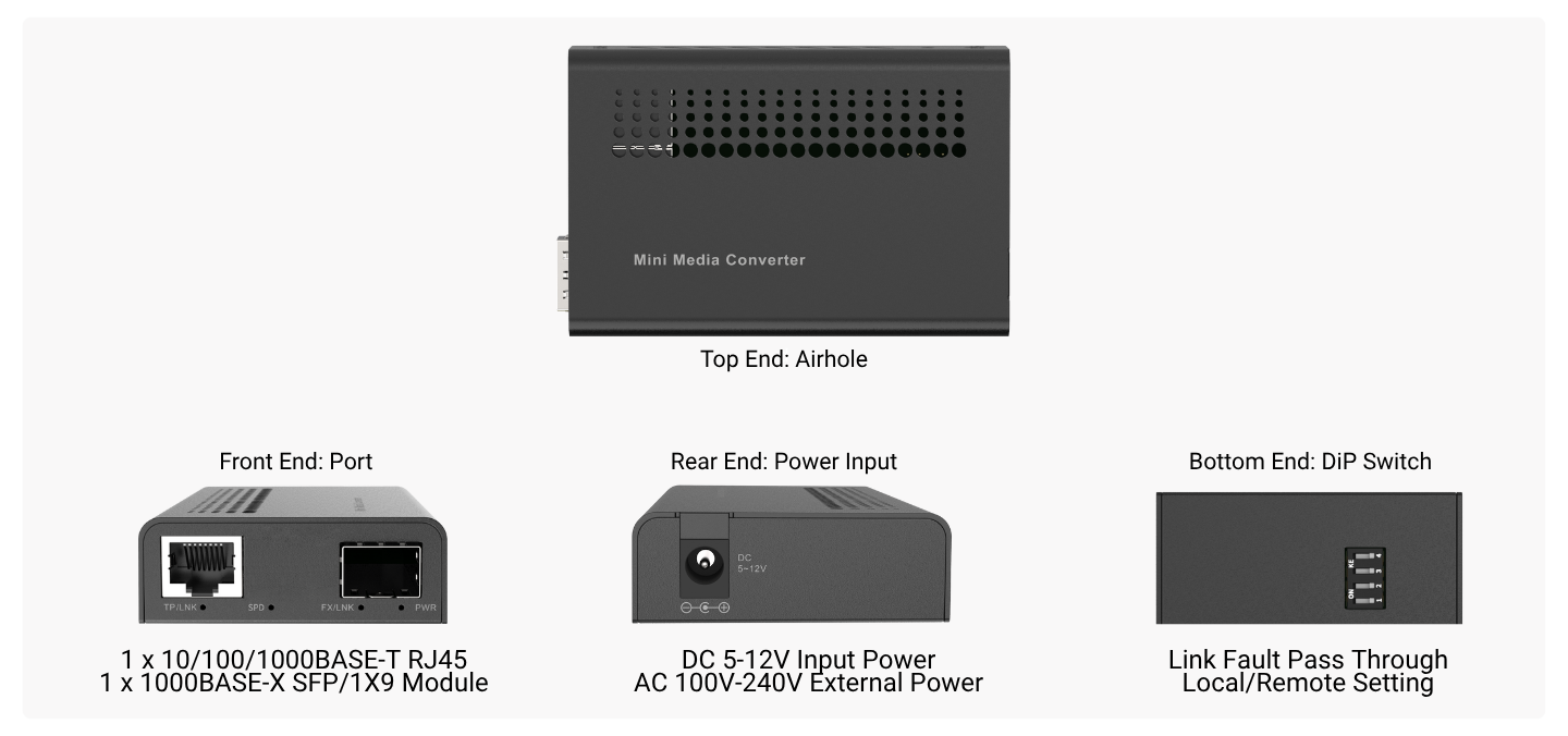 ✅ Diseñado para la flexibilidad: compacto (90x60x20 mm, 120 g) con opciones de montaje en escritorio o pared, amplio rango de alimentación DC 5-12V y refrigeración pasiva sin ventilador (0 dBA de ruido), ideal para entornos empresariales, ISP e industriales.