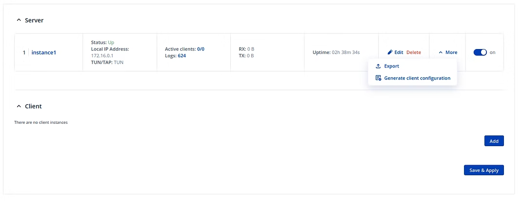Configurar conexiones OpenVPN ahora es más fácil con una opción de generación de configuración de cliente disponible en la instancia del servidor.