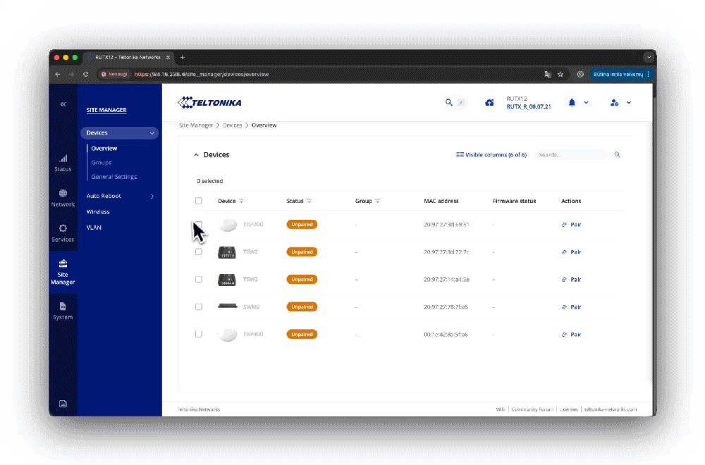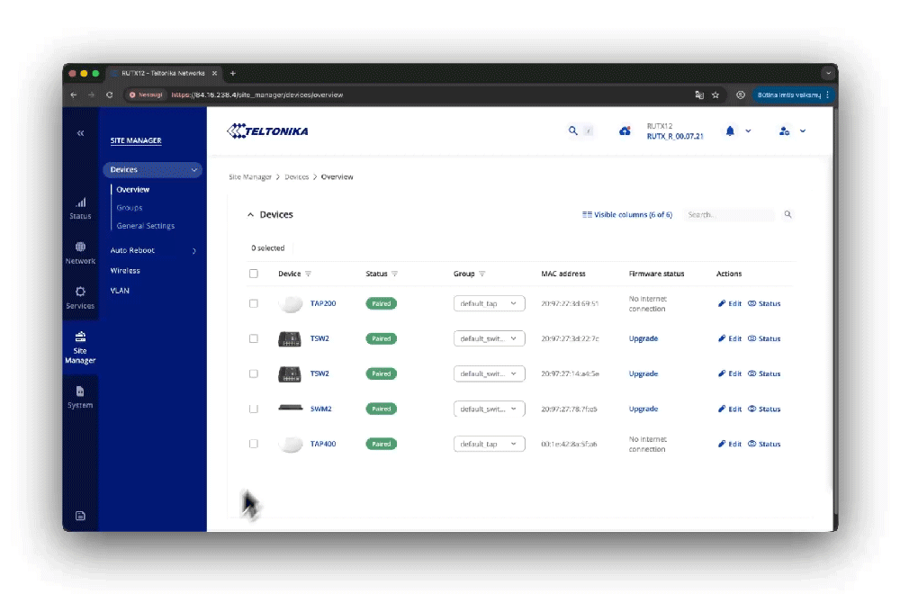 La última actualización del firmware de los routers incluye Site Manager, una nueva función que permite la gestión centralizada de los dispositivos Teltonika de forma local, sin depender de los servicios en la nube.